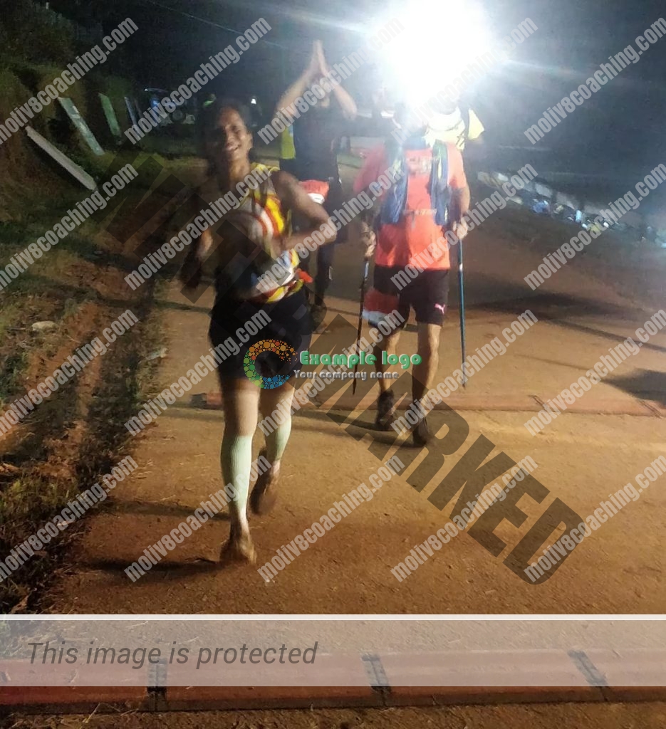 I came back to the (4k?) tar road to the 50K mark. This part allowed a lot more running in the last two km that weren’t totally uphill. I finished 50K in 7:55 totally eradicating any hopes of finishing the run while there still was daylight (although a few amazing runners did!!!!). I took a loo break after walking and climbing a few steps to the washroom, walked back about 50m to the baggage area and got my bag quickly to replenish. Here, I appreciate the baggage counter volunteers again for their organization and efficiency. Noticed that I had one blood blister on a toe, just applied Vaseline generously and changed my shoes and socks. I also decided to wear my knee caps as a precaution, a good decision in retrospect. Stuffed my pockets with a torch and more UPTK gels. Took an additional small bottle besides the handheld that I had carried for 50K. Then I walked back to the start point and filled up the water bottles. The total break there was about 20 min or so. I was wishing it had taken lesser time…only to be able to reduce the distance to be run in the dark!